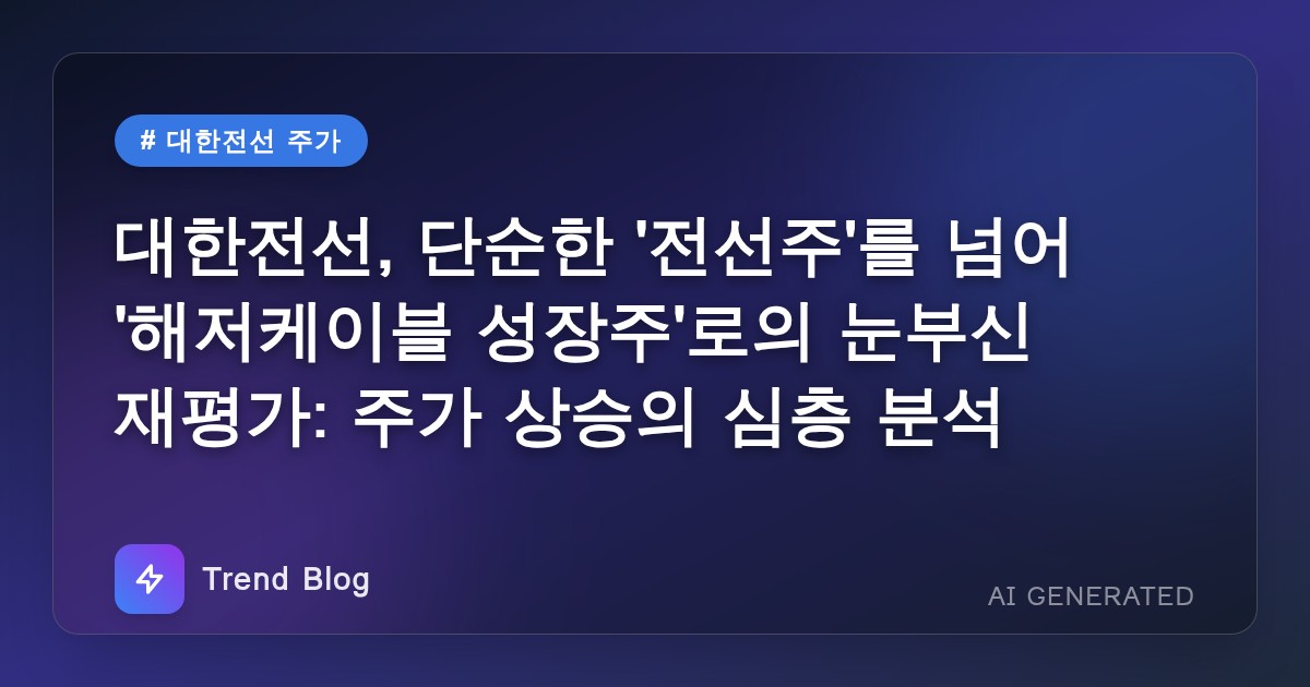 대한전선, 단순한 ‘전선주’를 넘어 ‘해저케이블 성장주’로의 눈부신 재평가: 주가 상승의 심층 분석